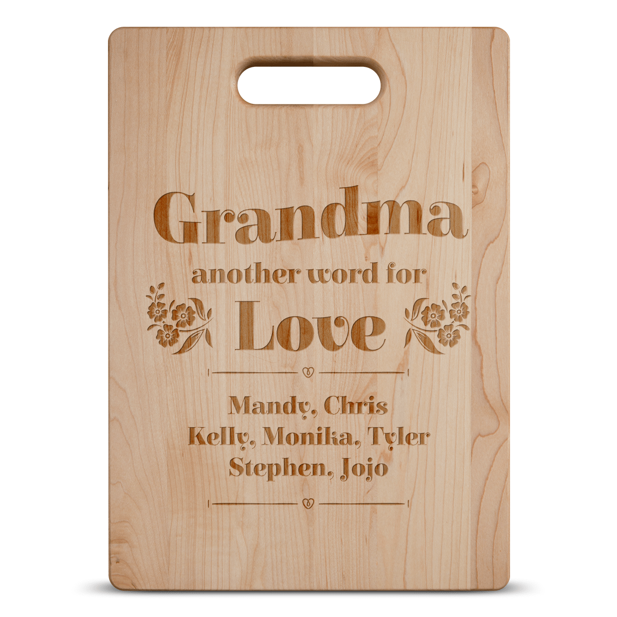 Introducing our “Grandma Another Word For Love Cutting Board” – a heartfelt tribute to the grandmothers who embody love and warmth. Crafted from solid maple and laser engraved with care, this cutting board is a symbol of the cherished bond between grandmothers and grandchildren.