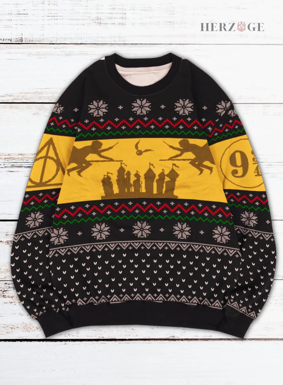 Our custom-made sweaters are inspired by the thrilling game of Quidditch from the Harry Potter series. Don this sweater and feel the magic and excitement of a Quidditch match right in your living room!
