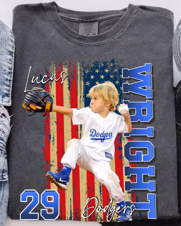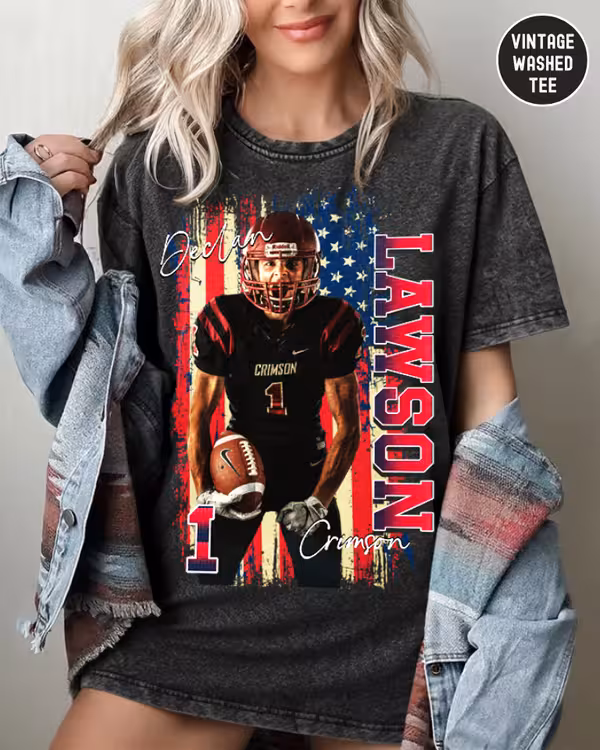 Show off your love for your favorite player and the stars & stripes with our Personalized All-American Sports Shirt – Grunge Flag Edition. Whether it’s football, baseball, basketball, soccer, softball, or hockey—this shirt is the ultimate way to cheer with pride in bold, vintage style.
