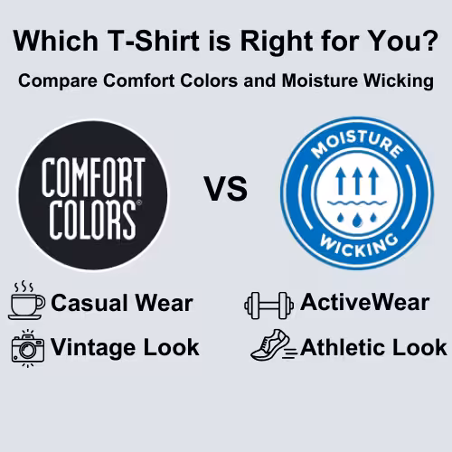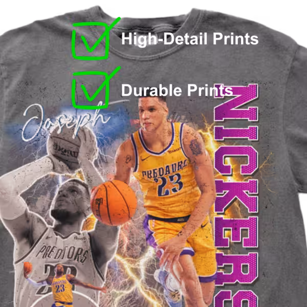 Premium Printing – DTG (Direct-to-Garment) printing on all shirts, except the Moisture Wicking and Basic Cotton Tee, which uses DTF (Direct-to-Film) for durability.