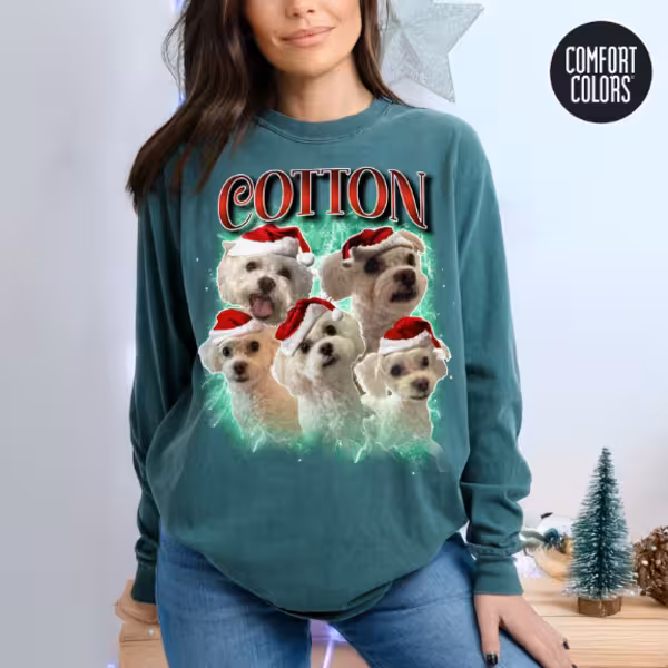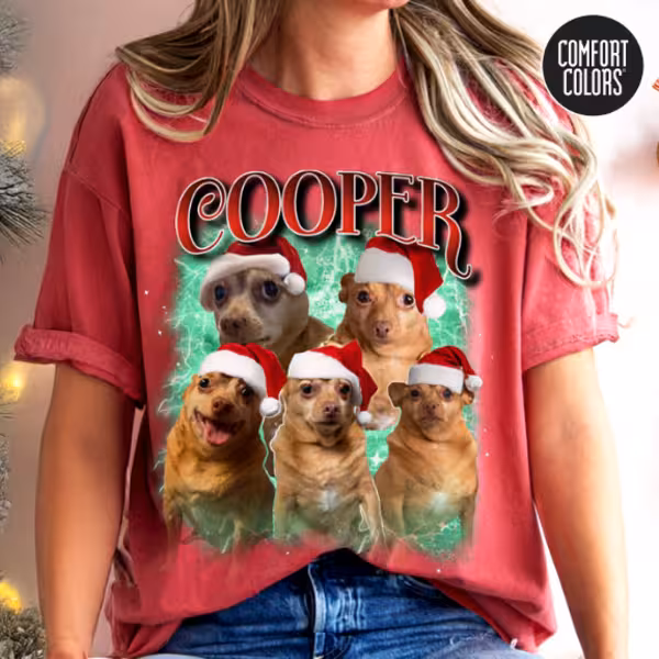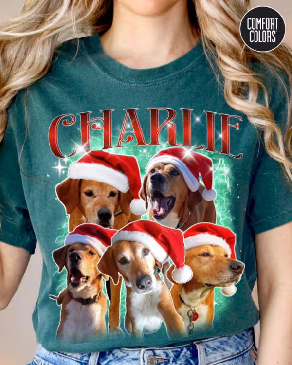 Make this holiday unforgettable with our Personalized Christmas Bootleg Pet Shirt — where festive charm meets custom craftsmanship. Upload up to 5 photos of your furry friend and add their name, and our smart design technology will automatically create a stunning Christmas version of your pet — complete with adorable Santa hats and a vibrant, retro-inspired layout.