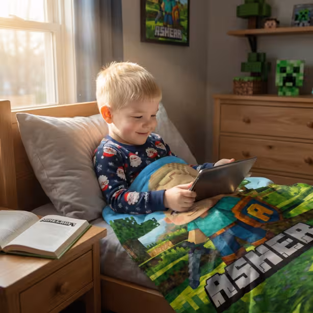 This Personalized Minecraft Blanket transforms any photo into a cozy, custom keepsake your child will cherish — perfect for birthdays, Christmas, or every gaming night in between.