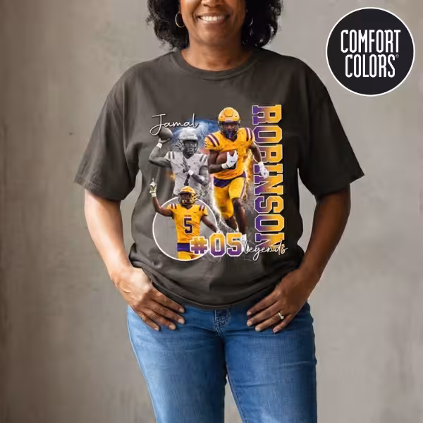 Turn your favorite athlete into a wearable masterpiece. Simply provide your details, and our team will handle the rest—creating a custom design that captures the energy of the game. Whether you’re a proud parent, grandparent, or the number one fan, this is the ultimate way to show your support from the sidelines to the streets.