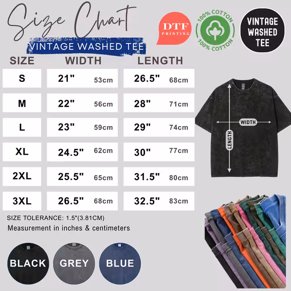 Vintage Washed Tee (DTF): A rugged, retro feel with vibrant, durable Heat Transfer film.