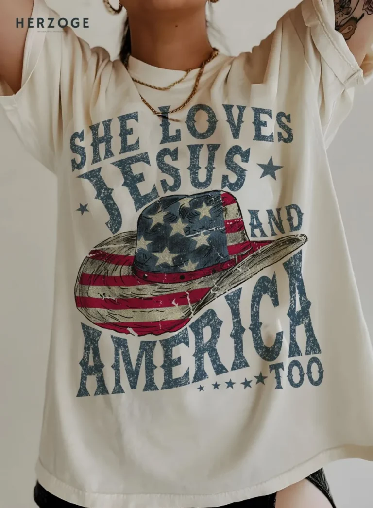 More than just a shirt, it’s a statement. Get your “She Loves Jesus and America Too” tee today and show the world what you stand for!