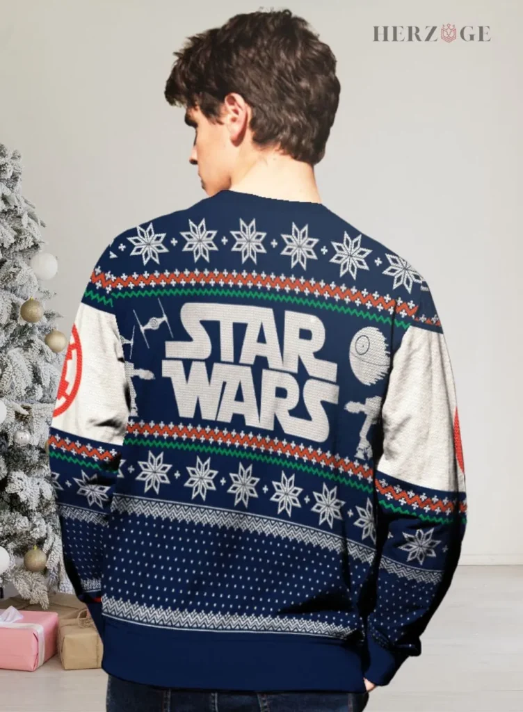 Our Star Wars Christmas Sweater features a timeless round neck and long sleeves, making it a perfect blend of classic and contemporary. The design retains the texture of traditional sweaters, but with a stylish and casual twist that’s uniquely Star Wars.